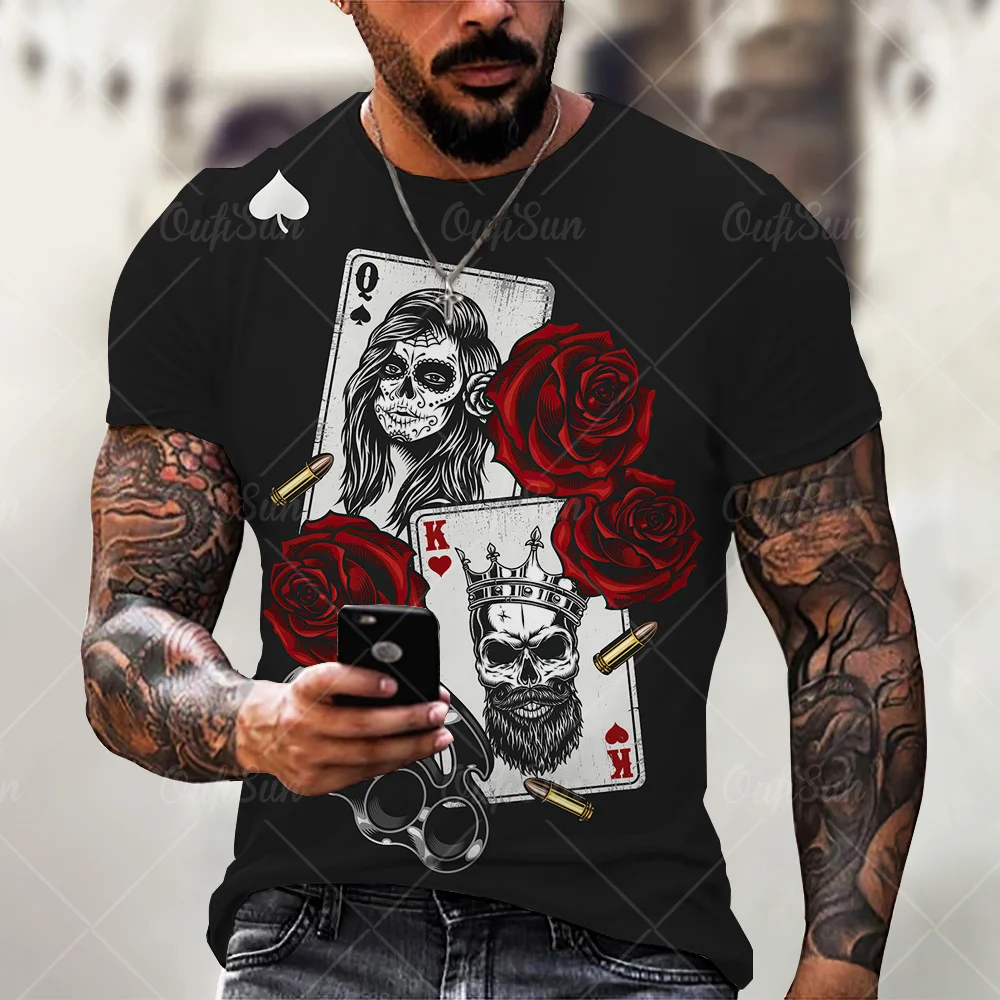 Футболка мужская с 3D-принтом короля покера, модная уличная одежда с круглым вырезом и короткими рукавами, неоновая Повседневная Уличная одежда, лето