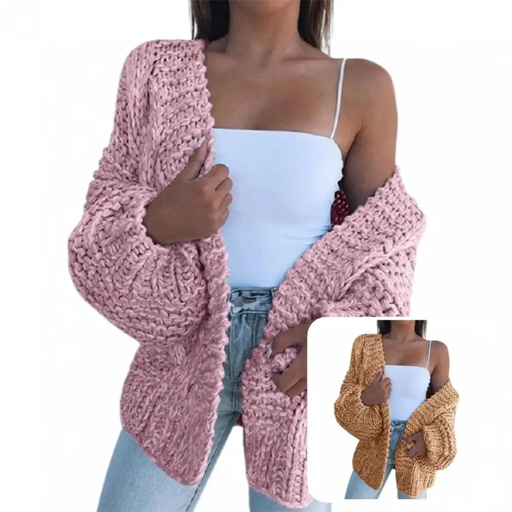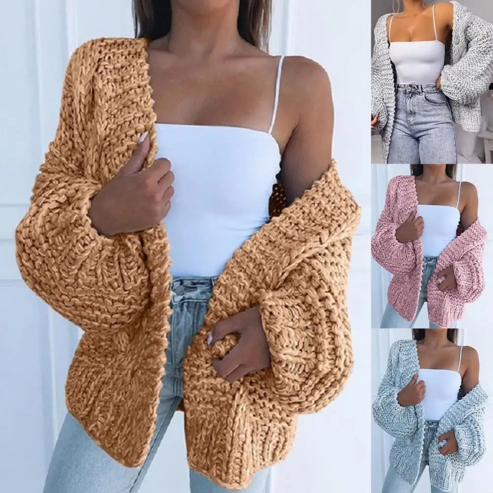 Женский плотный кардиган, однотонный теплый открытый Спереди Кардиг...