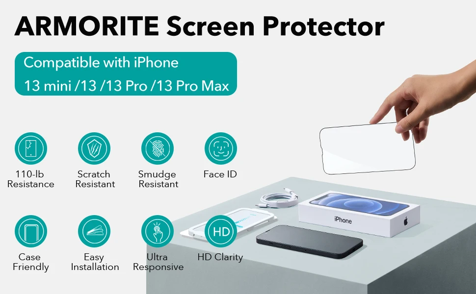 Защитное стекло ESR для iPhone 13, закаленное, сверхпрочное, с полным покрытием