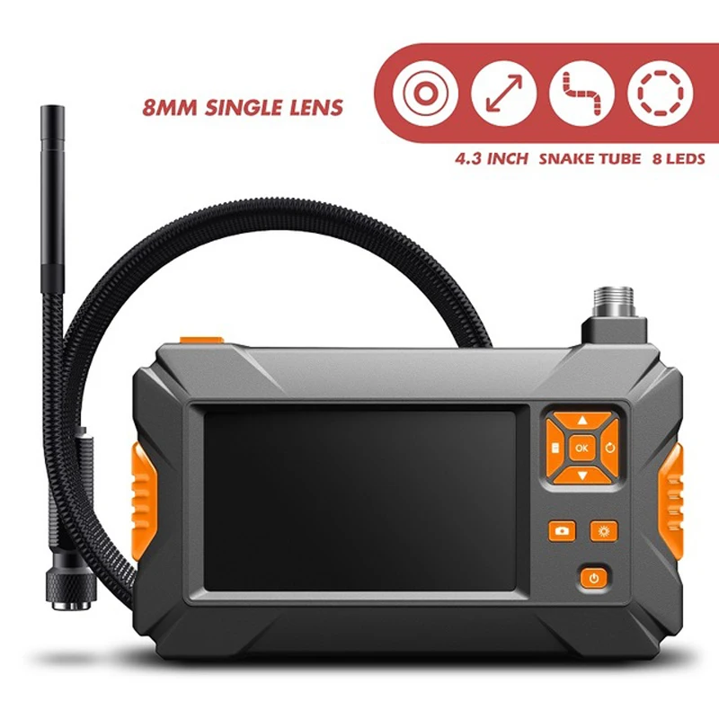 8 мм ручной экран промышленный эндоскоп камера с гибким кабелем 2,0 МП змеиная камера HD 4,3 дюймовый объектив для осмотра