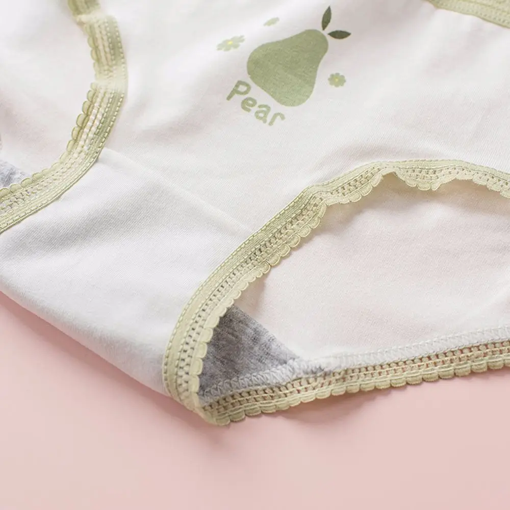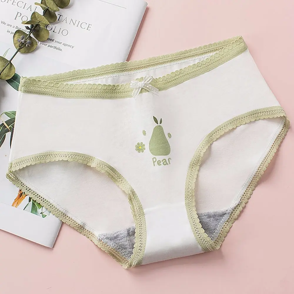 Трусы женские кружевные светло-зеленые, милое дышащее хлопковое нижнее белье со средней талией, с волнистым принтом груши, нижнее белье для девушек