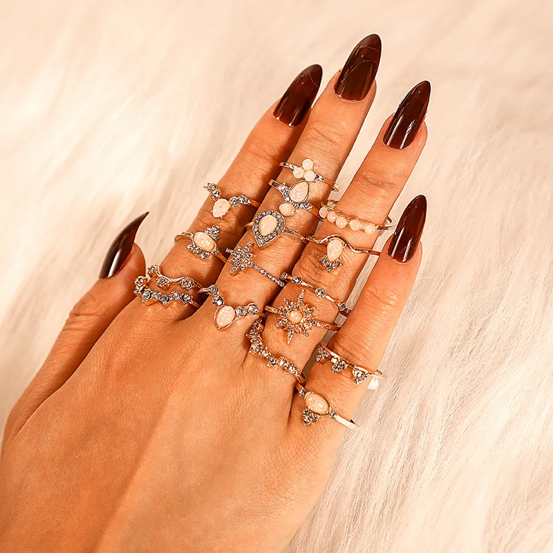 DIEZI 11 шт.компл. цветок крест костяшки капли воды, кольца, набор ...