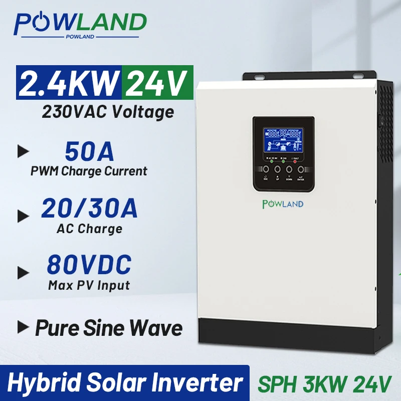 Гибридный Инвертор солнечной энергии, 2400 Вт, 220 В, 50 А, ШИМ, 3 кВА, немодулированный синусоидальный инвертор, 5060 Гц, 24 В, зарядное устройство инвертор солнечной установки
