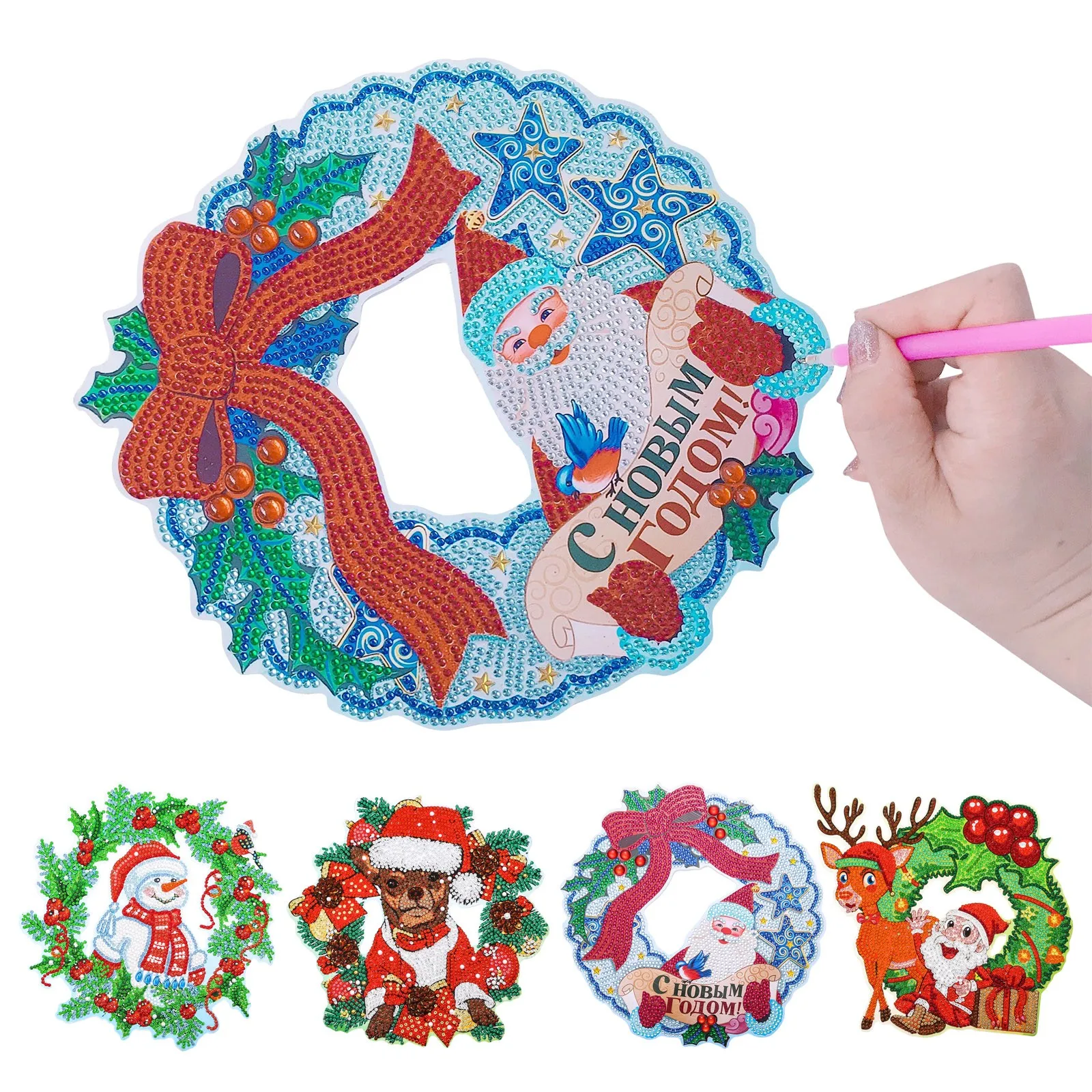 Набор для алмазного рисования сделай сам, декоративное украшение в виде мультяшного рождественского венка, живопись для дома, стола, декоративные принадлежности