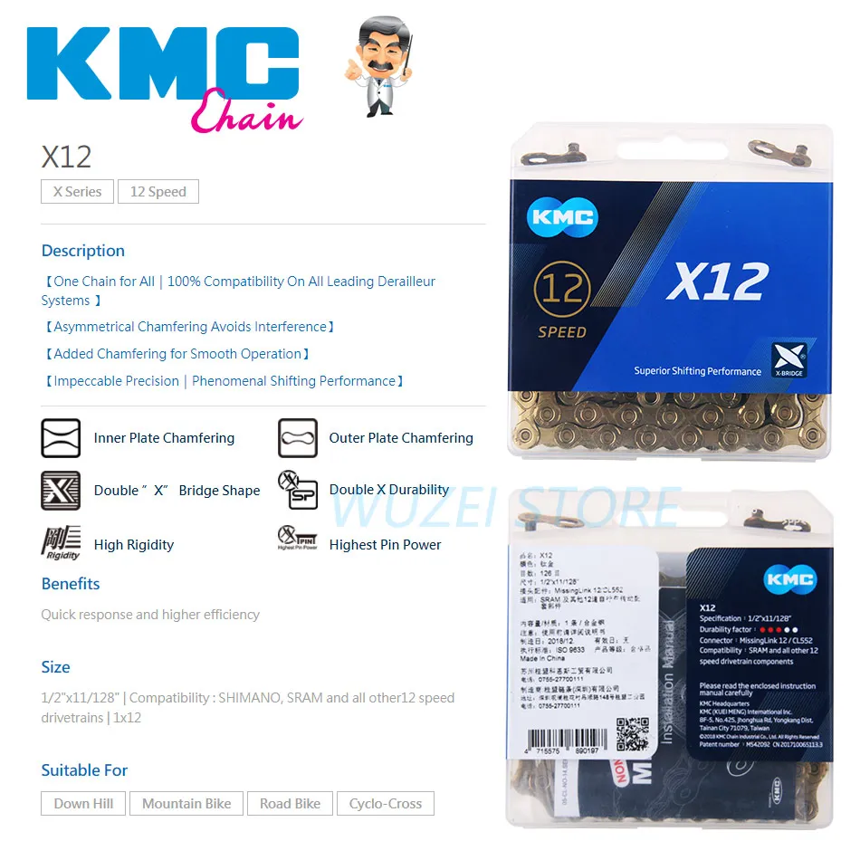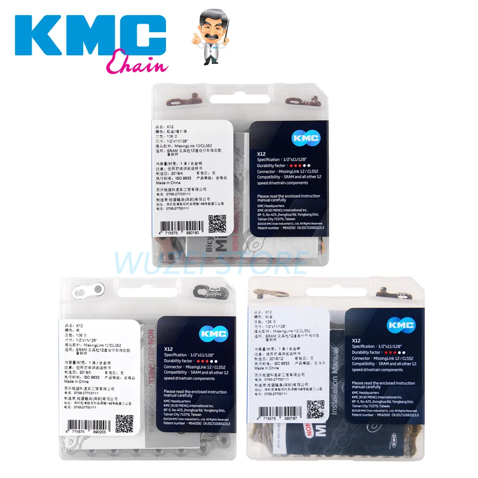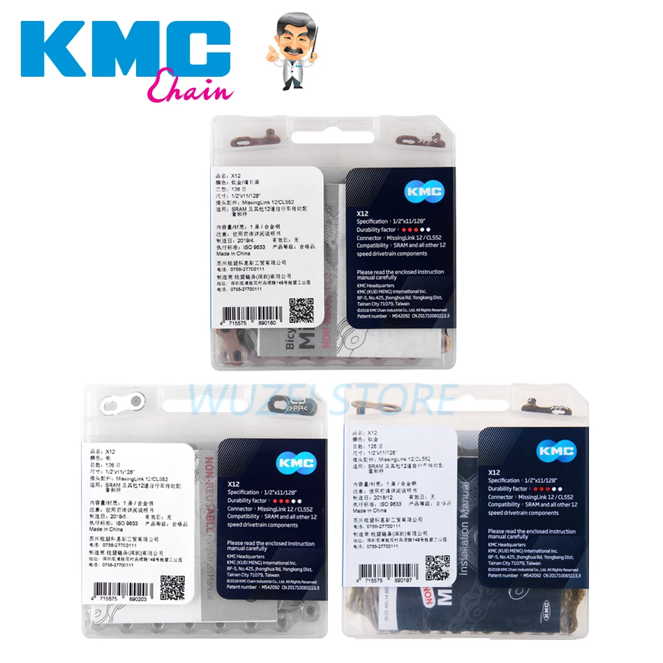 Оригинальная цепь KMC для горного велосипеда X12 126L, 12 Скоростей, золотистая, серебристая, черно-золотистая и волшебная кнопка, запчасти для горного и дорожного велосипеда