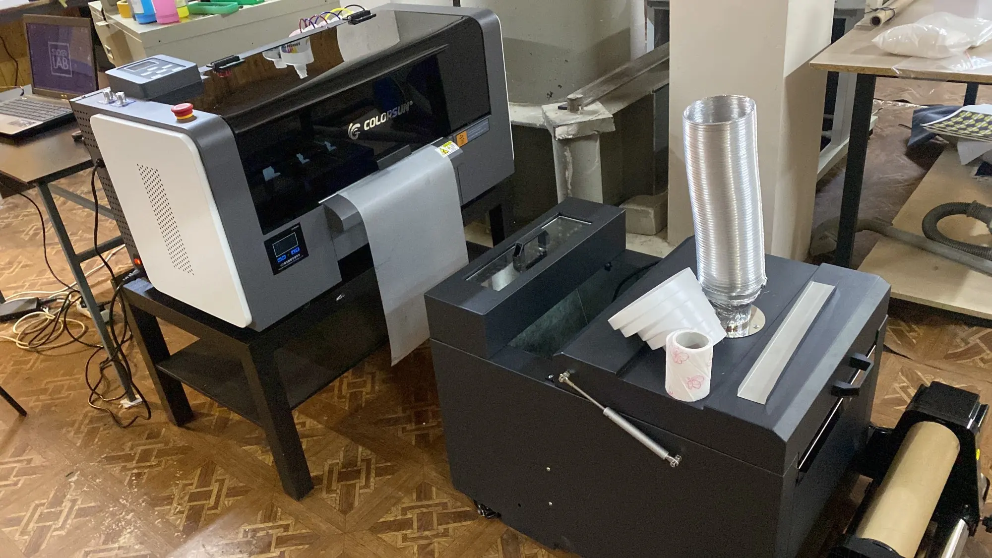 Он может напечатать футболку, шапку, носок, фартук, маску, сумку, джинсы, подушку, обувь и так далее.