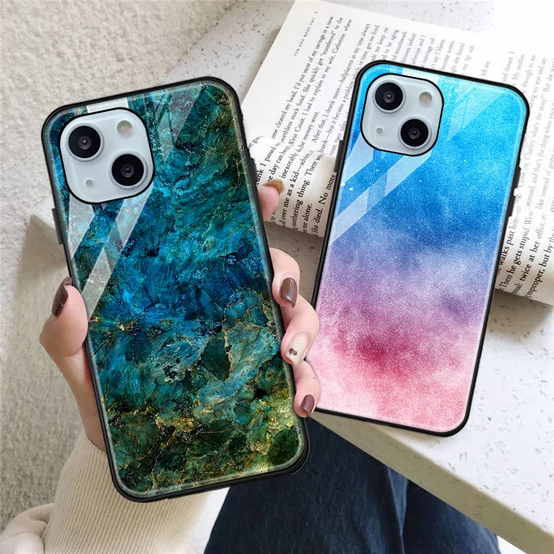 Mobile Phone Case 11Marble Tempered Glass Case on For iPhone 13 Case Funda