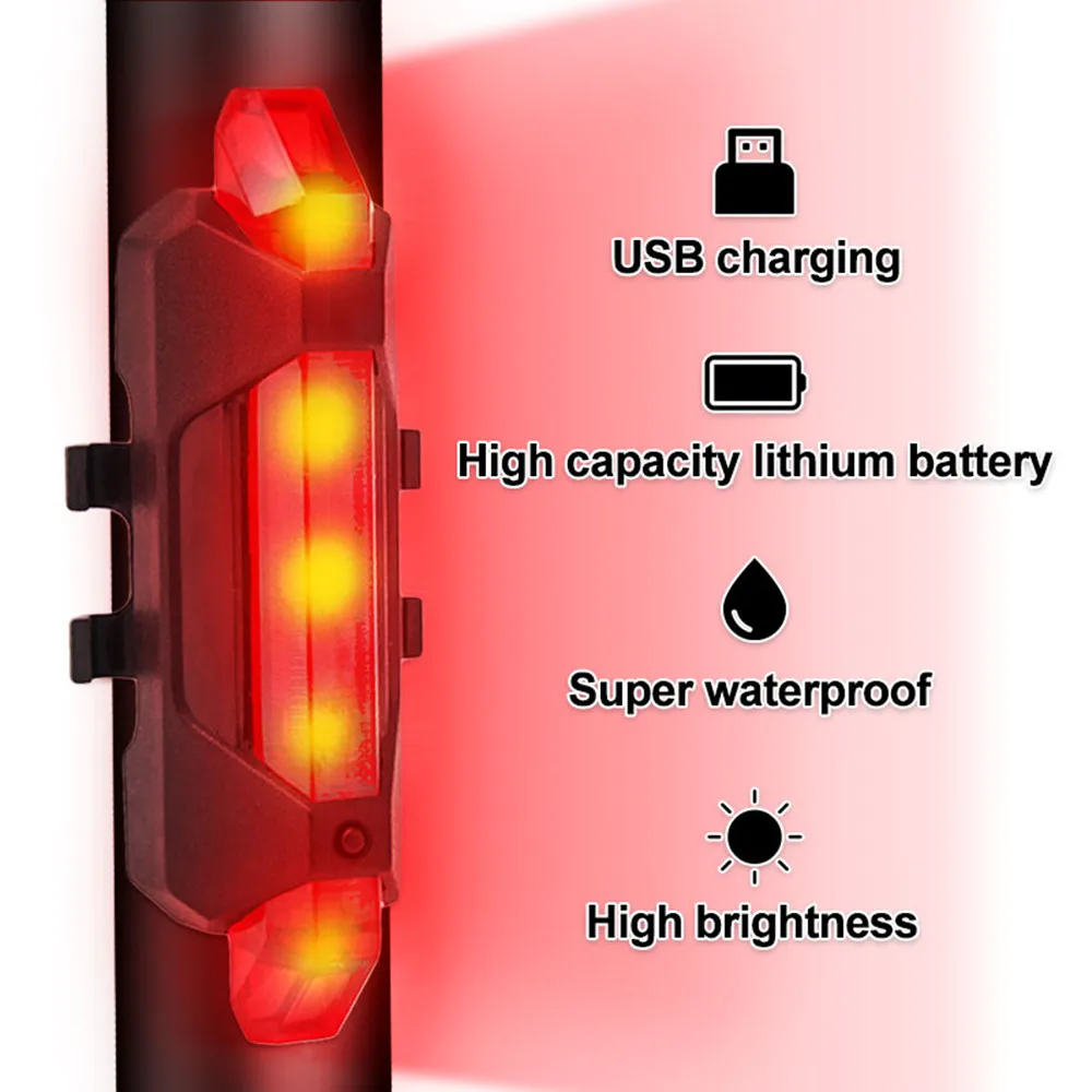 (Встроенный литиевый аккумулятор) USB Перезаряжаемый велосипедный задний фонарь и автоматическое отключение при полной зарядке.