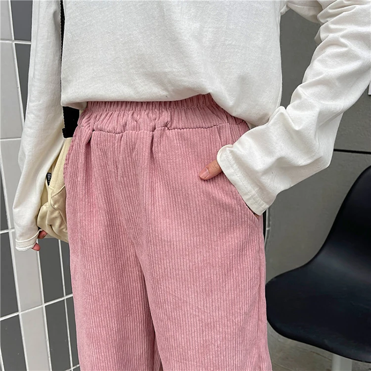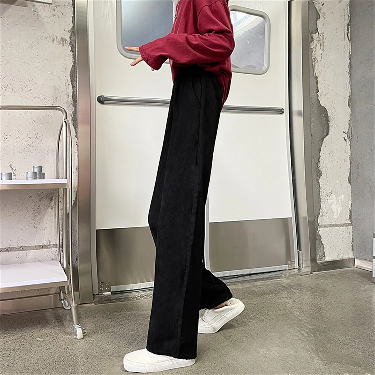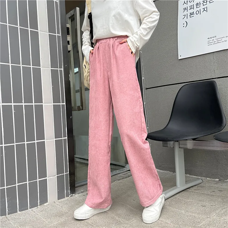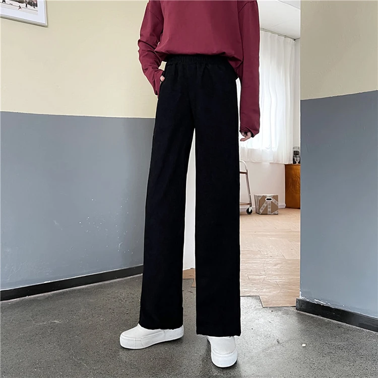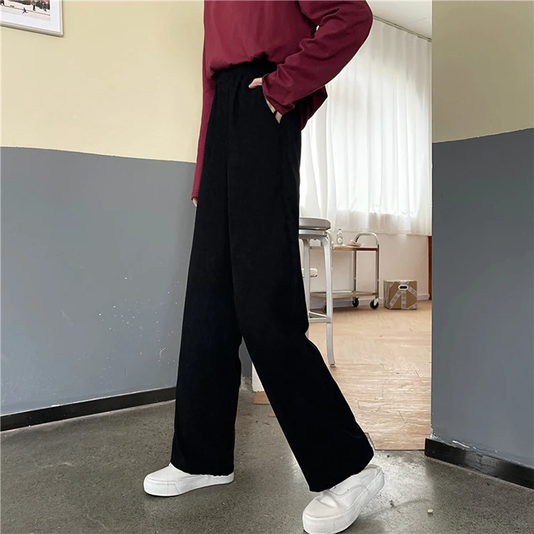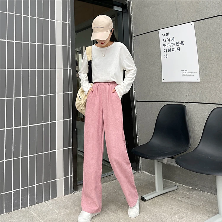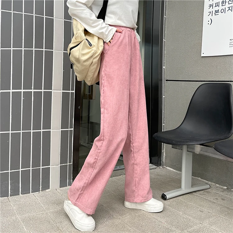 2021 женские розовые вельветовые брюки с широкими штанинами и высокой талией, Свободные повседневные длинные шелковые брюки с карманами, черные женские брюки, лидер продаж