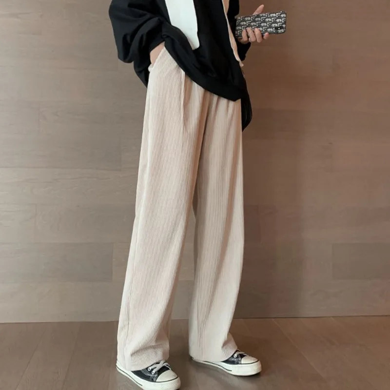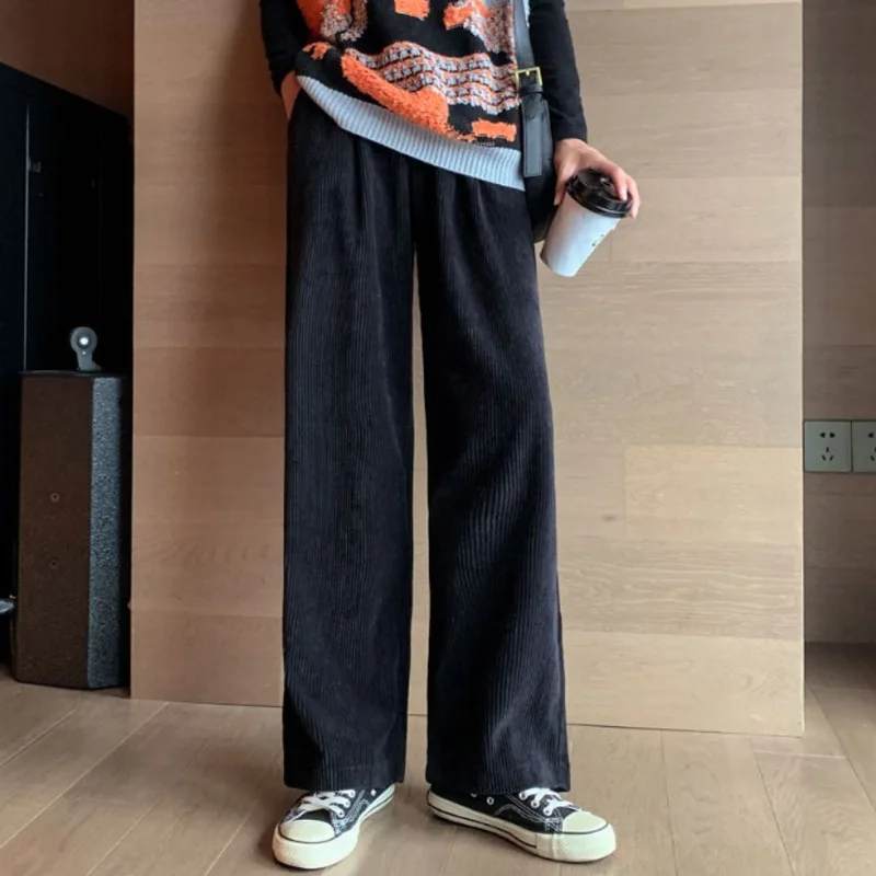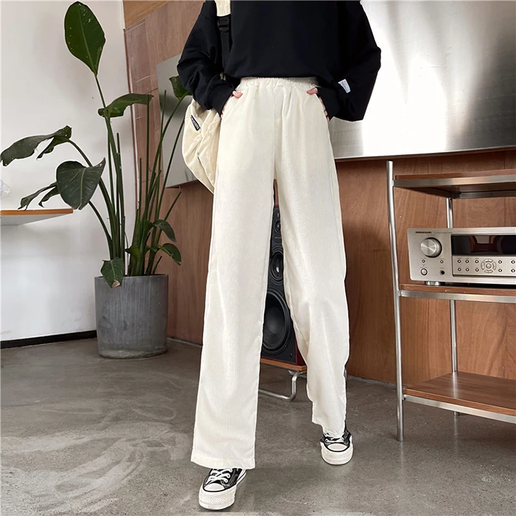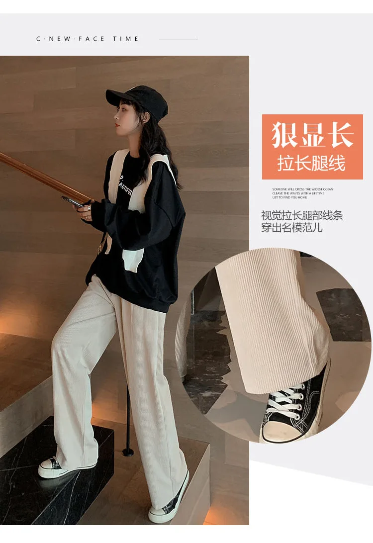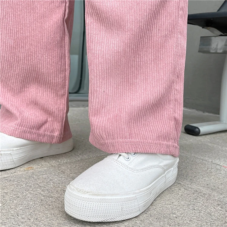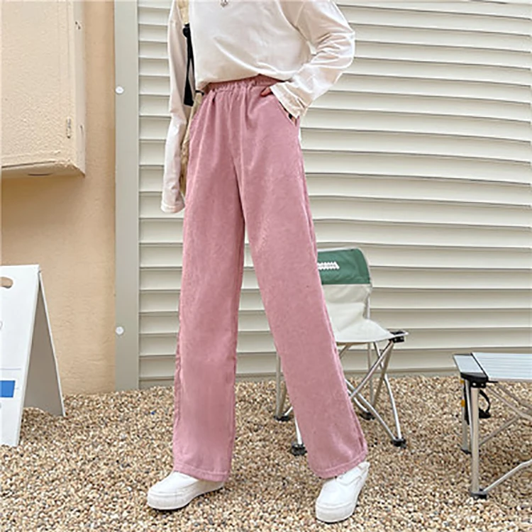 2021 женские розовые вельветовые брюки с широкими штанинами и высокой талией, Свободные повседневные длинные шелковые брюки с карманами, черные женские брюки, лидер продаж