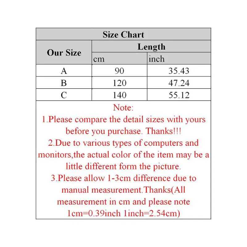 3. Из-за различных методов измерения возможна погрешность в 1-3 см относительно товаров, перед заказом убедитесь, что это подходит для вас.