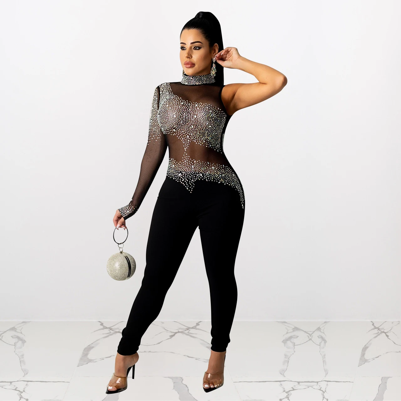 Q21y966 европейские и американские женские осенне-зимние сексуальные одноцветные бриллиантовые прозрачные Комбинированные брюки