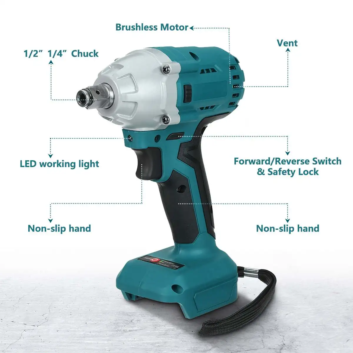 Электрический бесщеточный ударный гайковерт BLMIATKO, шуруповерт, перезаряжаемый 12 торцевой гайковерт, электроинструмент, беспроводной для батареи Makita 18 в