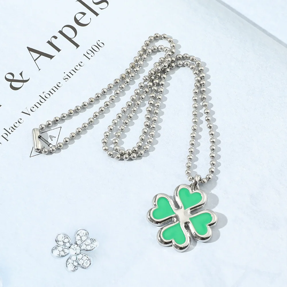 Ожерелье с кулоном в виде четырехлистного клевера для женщин и девушек