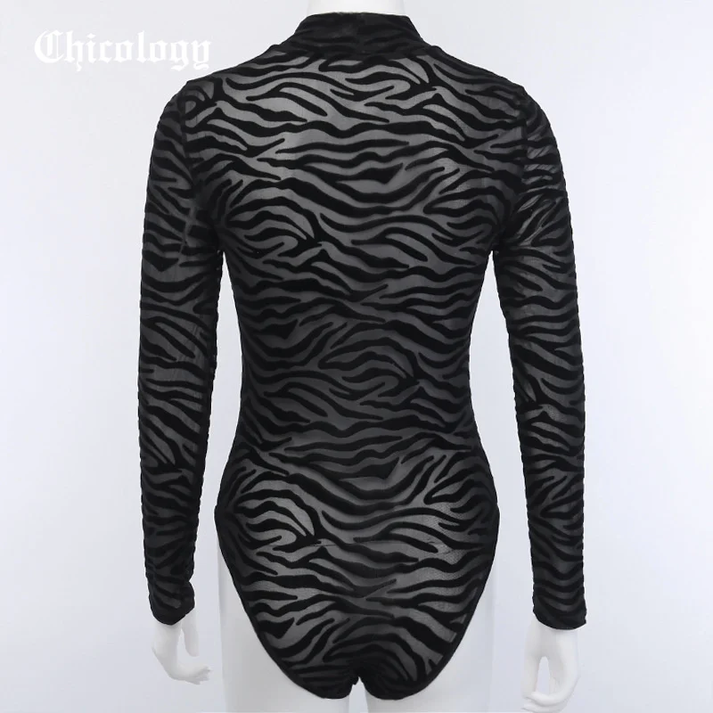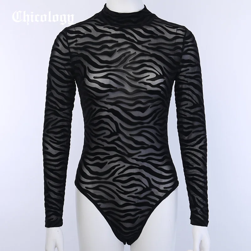 Chicology 2021 женские осенне-зимние черные боди с принтом тигра прозрачные боди с длинными рукавами Y2K готические уличные Детские костюмы