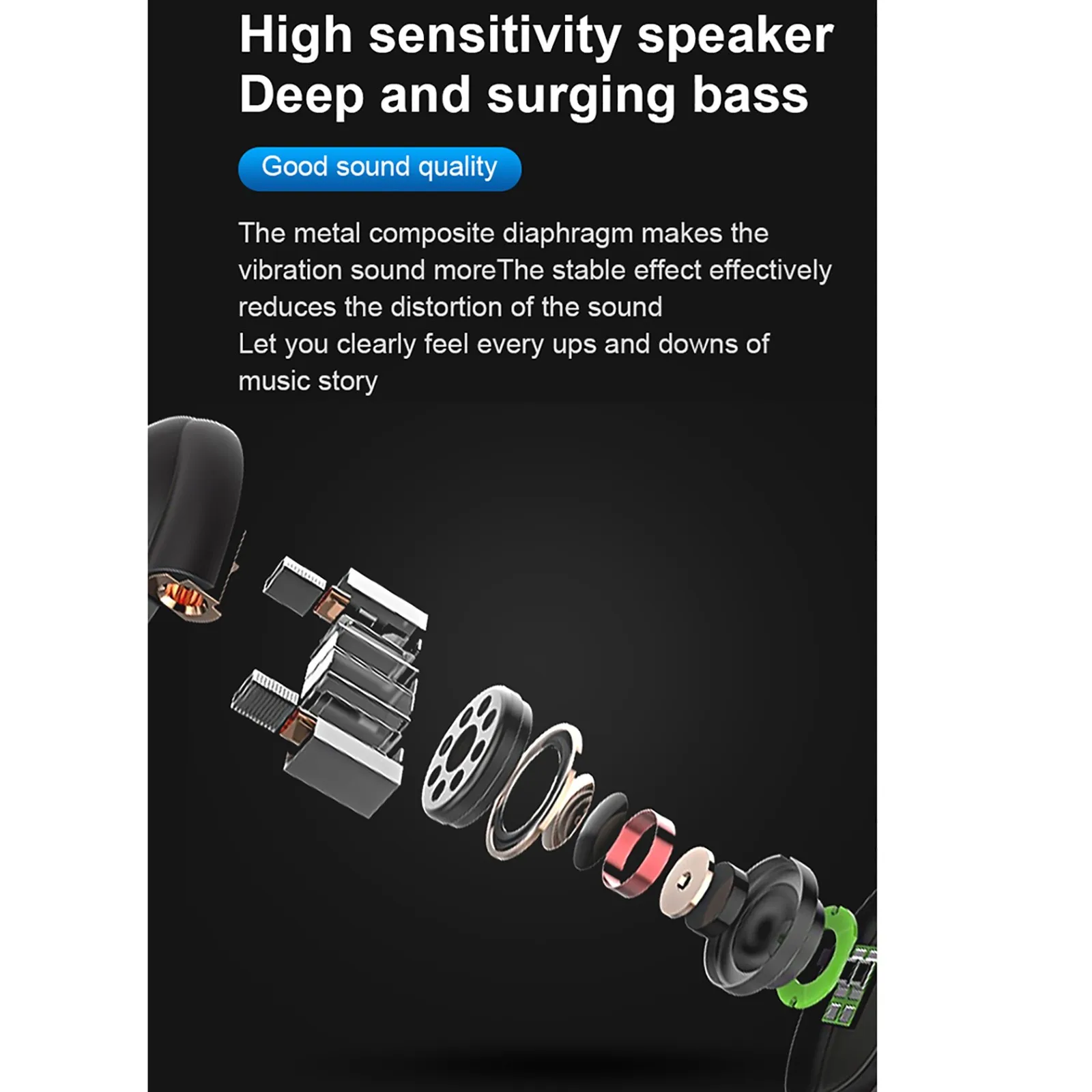 Встроенный микрофон. Одна кнопка, чтобы ответить/повесить вызов. Поддерживает голосовые подсказки и отчет о номере при поступлении телефонного звонка. Поддержка беспроводной потоковой передачи музыки, 6 часов воспроизведения музыки за одну зарядку Одна Многофункциональная кнопка, встроенный микрофон, 5 часов работы в режиме разговора за зарядку, 2 часа зарядки, usb-кабель для зарядки в комплекте Невидимый, самый маленький и ультра-светильник. Не подключайте провода, создавайте больше удобства при работе, занятиях спортом и других видах деятельности. Избавьтесь от проблем с проводом. Умный чип Bluetooth V5.0, эффективная и стабильная передача данных. Совместим с любыми устройствами с поддержкой bluetooth, такими как мобильные телефоны, планшеты ПК и многое другое.Параметры