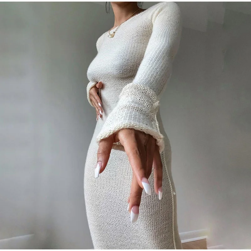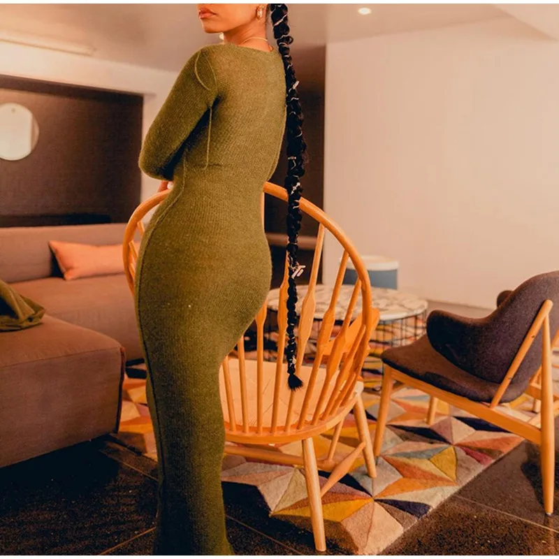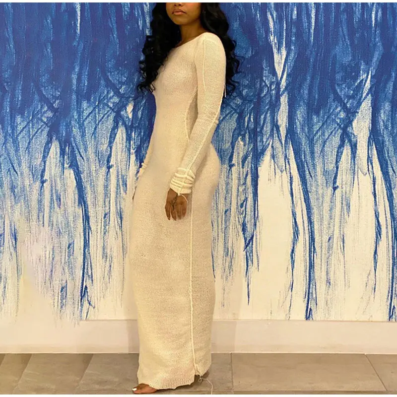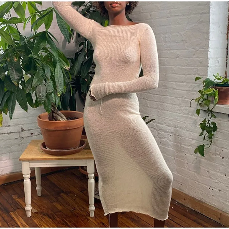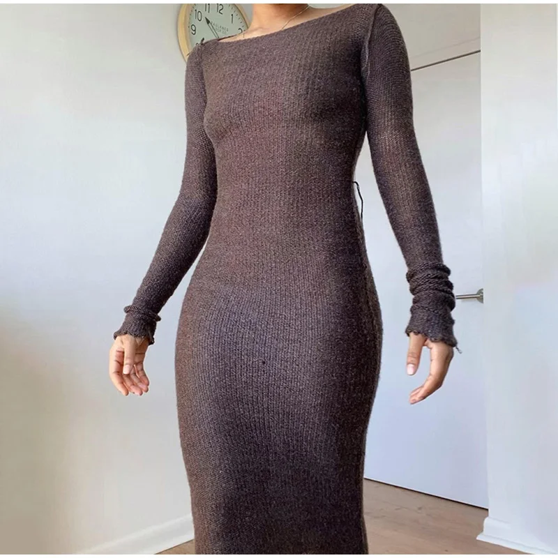 Женское трикотажное платье Y2K, однотонное облегающее платье с круглым вырезом, Повседневная Уличная одежда, осень платье макси с длинным рукавом