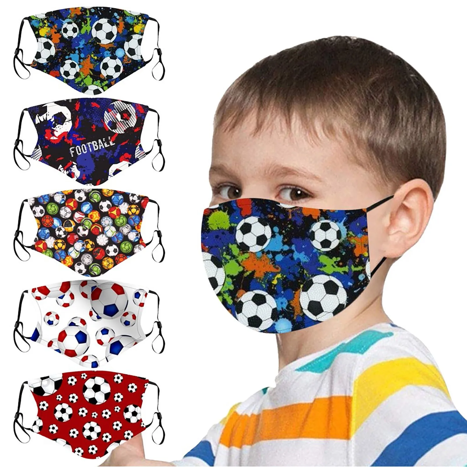 Детская маска для лица, мультяшная футбольная маска с принтом для мальчиков, Регулируемые моющиеся маски для рта, маски для детей