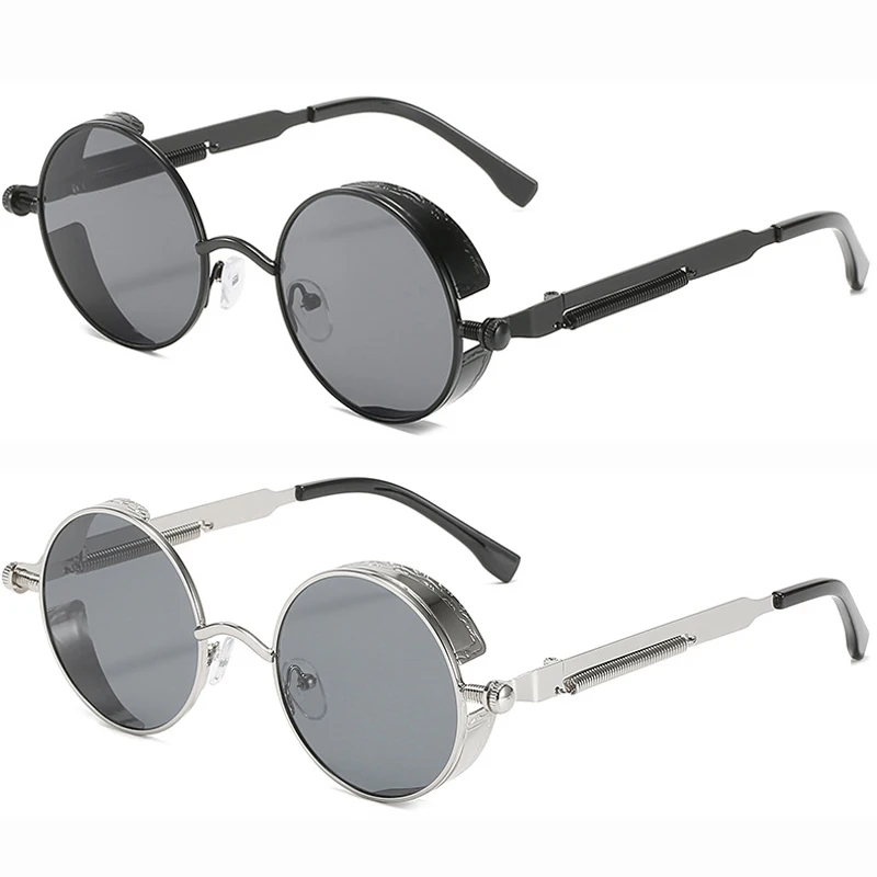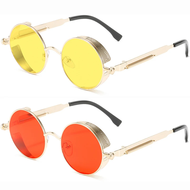 Солнцезащитные очки в стиле стимпанк UV400 для мужчин и женщин, готические дизайнерские цветные линзы в круглой оправе, в стиле стимпанк