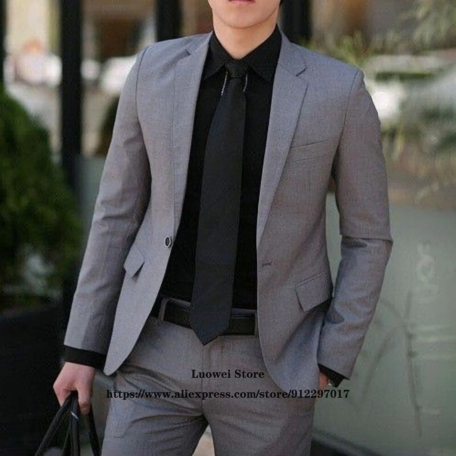 Модные Повседневные облегающие мужские костюмы, комплект из 2 предметов, пиджак и брюки для жениха, свадебный смокинг для вечеринки, мужской официальный деловой костюм, мужской костюм