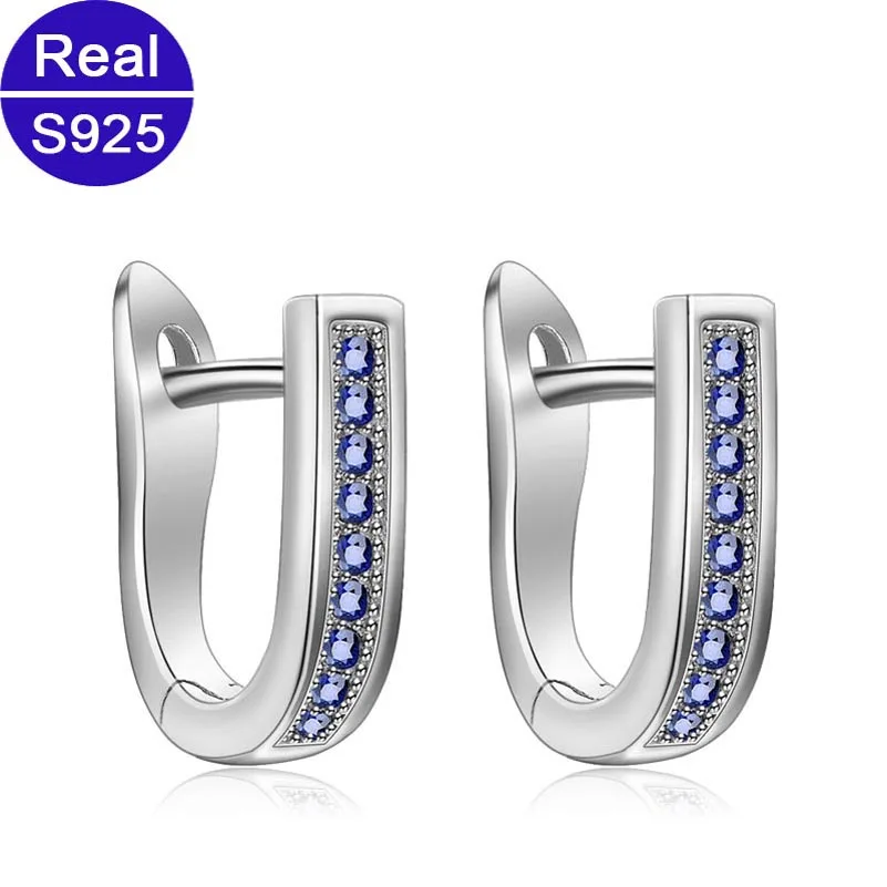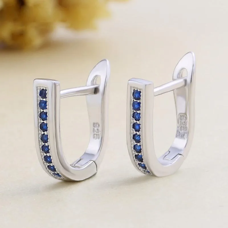 Женские серьги-кольца из серебра 925 пробы, с сапфирами