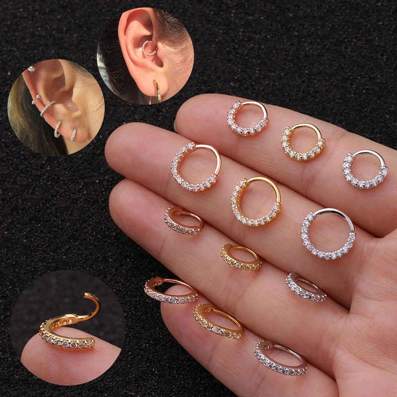 Медное инкрустированное циркониевое кольцо для носа и ушной кости двойного назначения, европейские и американские ювелирные изделия Для Пирсинга Ушей и носа.