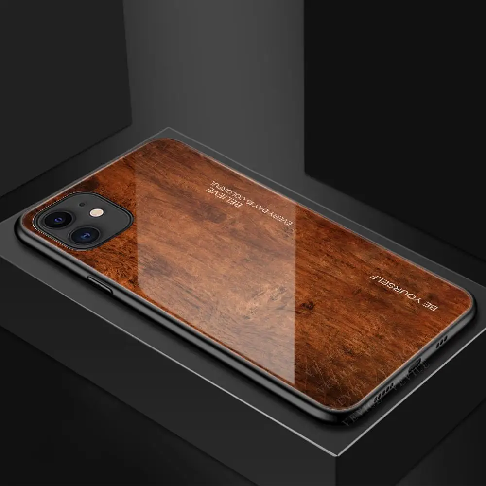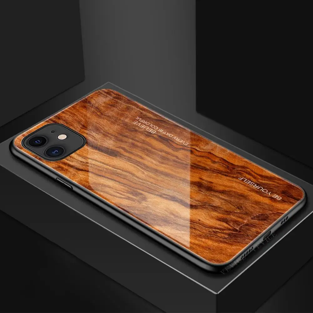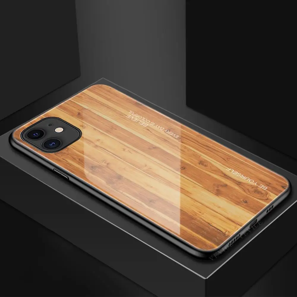 Features 1Wood Tempered Glass Case For iPhone 11Pro XS MAX Capa