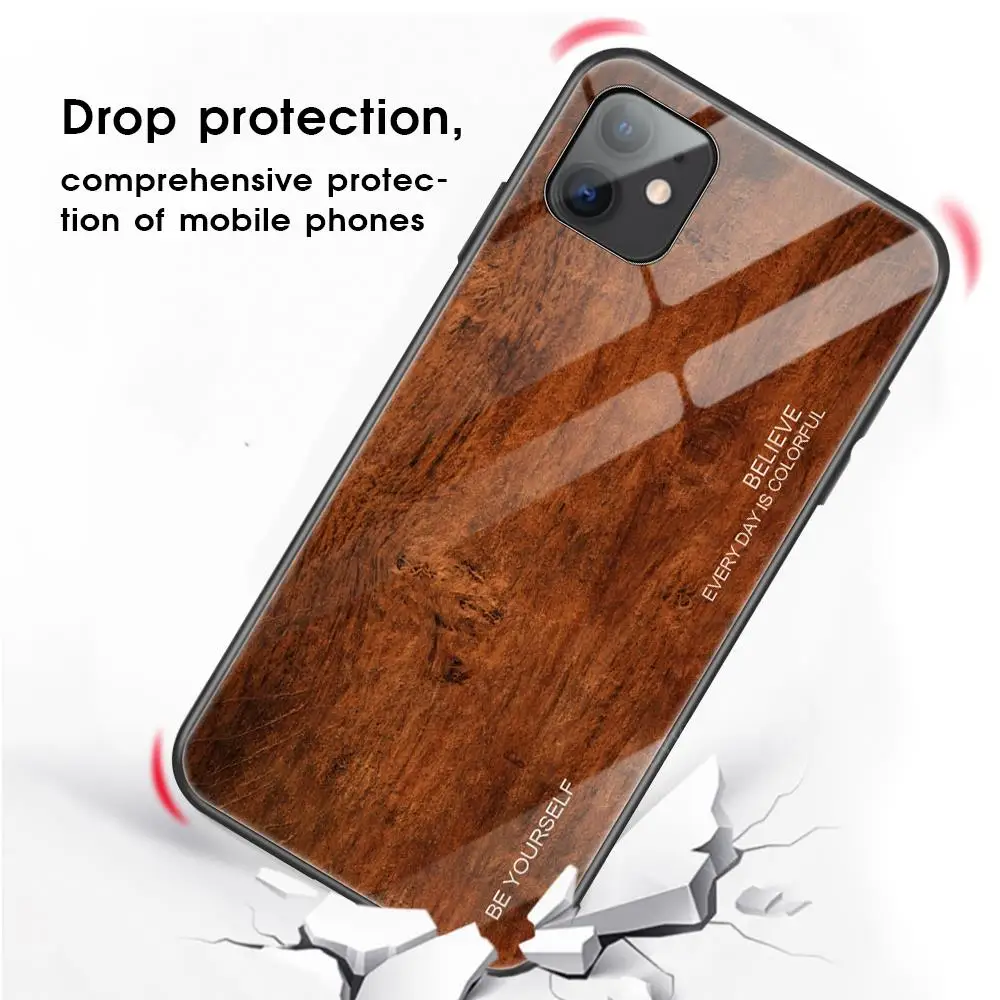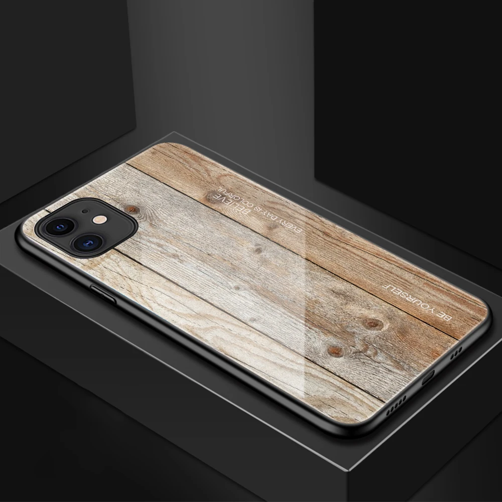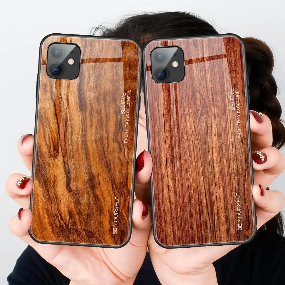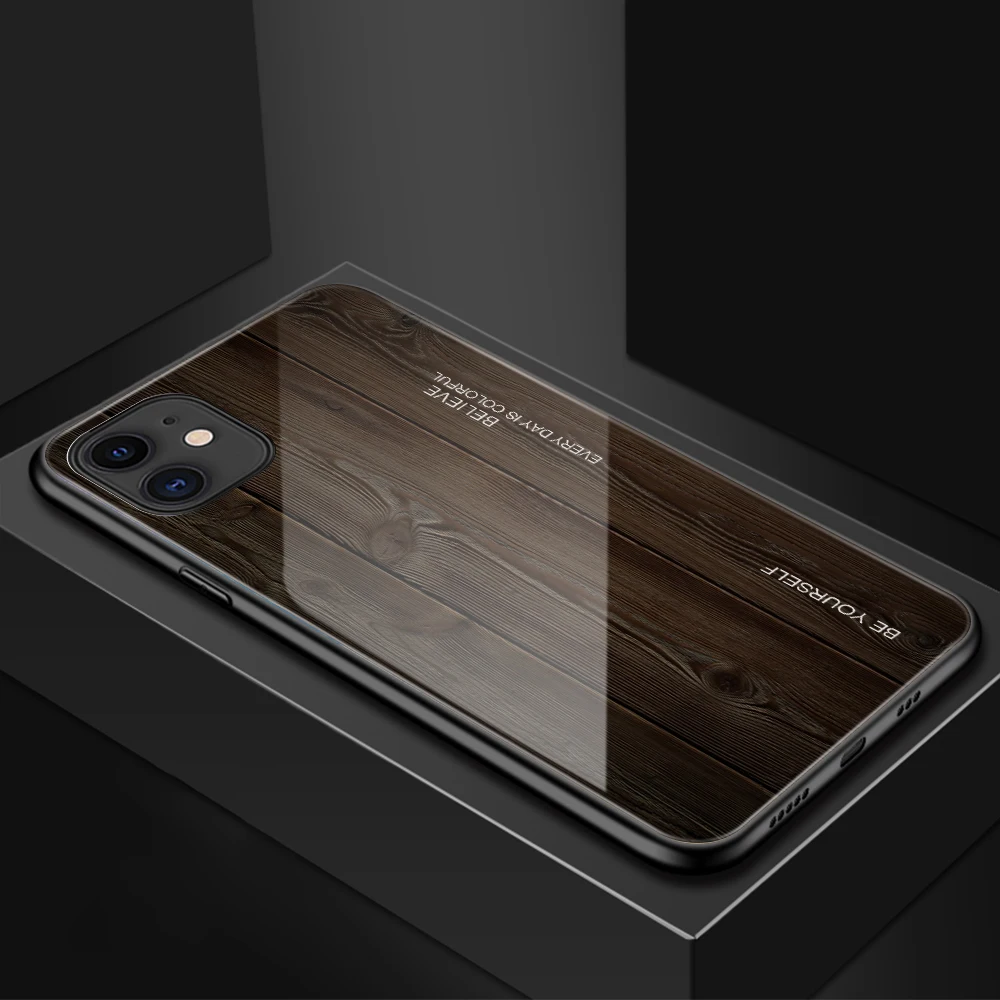 Features 1Wood Tempered Glass Case For iPhone 11Pro XS MAX Capa