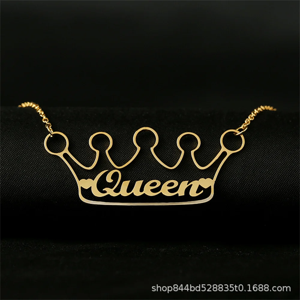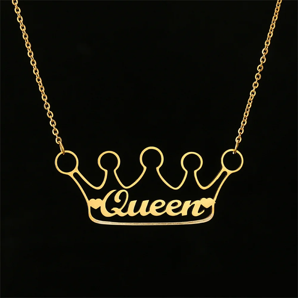 Ожерелья Tangula с именем короны на заказ, ожерелья для женщин из нержавеющей стали, персонализированная Золотая цепочка, ювелирные изделия принцессы