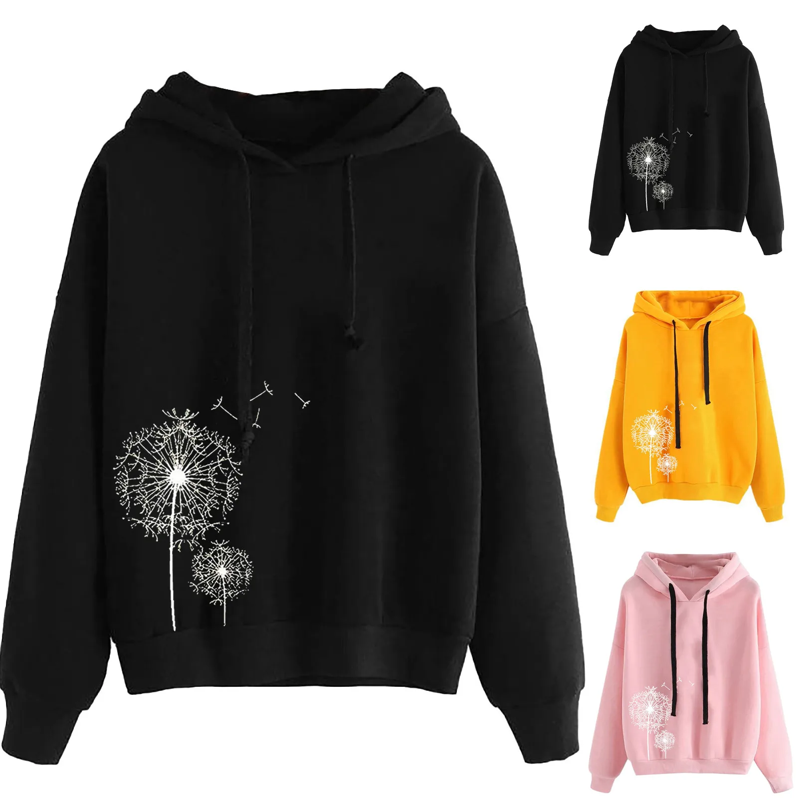 Женские толстовки с принтом одуванчика в стиле Харадзюку, зимний плотный теплый пуловер с длинным рукавом и капюшоном, топ, Женский Свитшот оверсайз