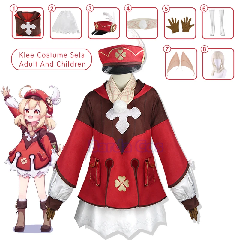 Костюм для косплея Genshin Impact Klee, Униформа, парик для косплея...