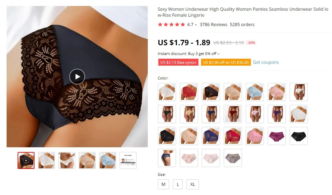 Различное описание товара. Кружево очень небрежное (если это можно назвать кружевом). Поставляется с дефектами швов. Не рекомендуется