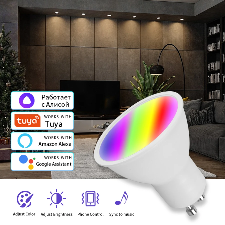 Умсветильник лампочка Tuya с Wi-Fi, светодиодные лампочки для дома, лампа RGB GU10, лампа Alexa Google Home, Яндекс. Алиса, умная жизнь, голосовое управление, 5 Вт, 110 В, 220 В