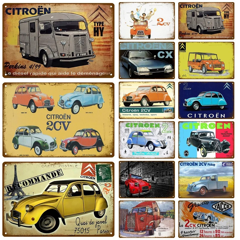 Металлическая табличка Citroen, металлический плакат, Оловянная табличка, настенные плакаты, винтажный Ретро эстетический декор комнаты, настенное художественное украшение
