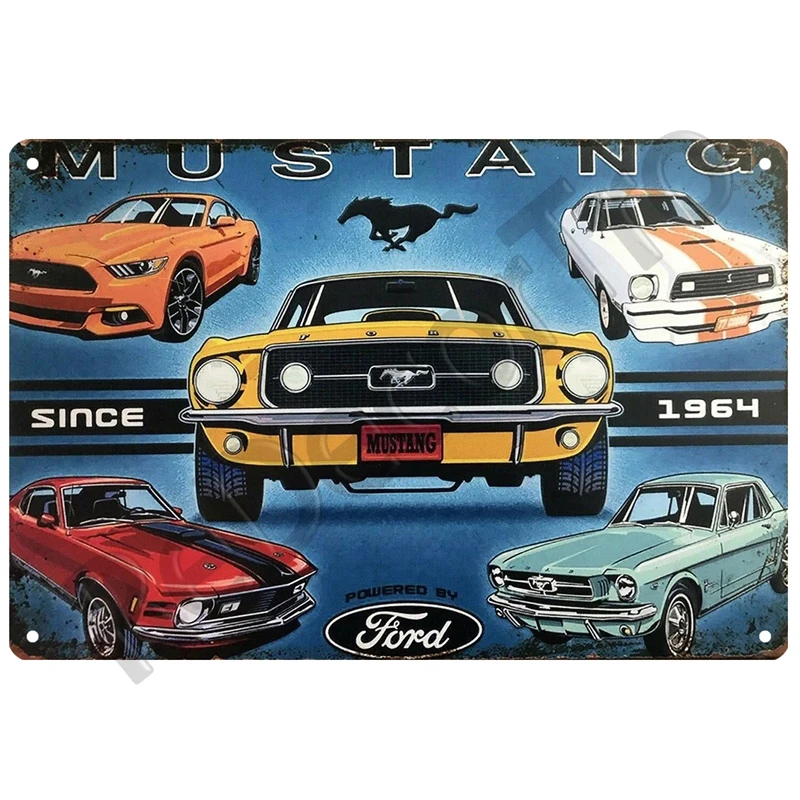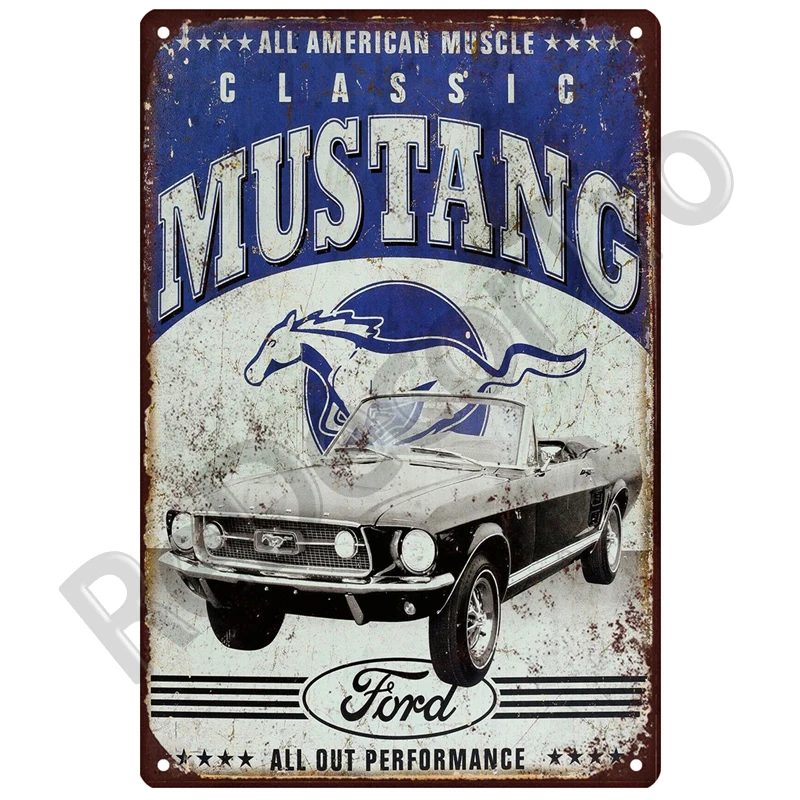 Ford Mustang, ретро, декоративный дом, фотообои, жестяной знак, винтажный постер, Декор стены, фотообои