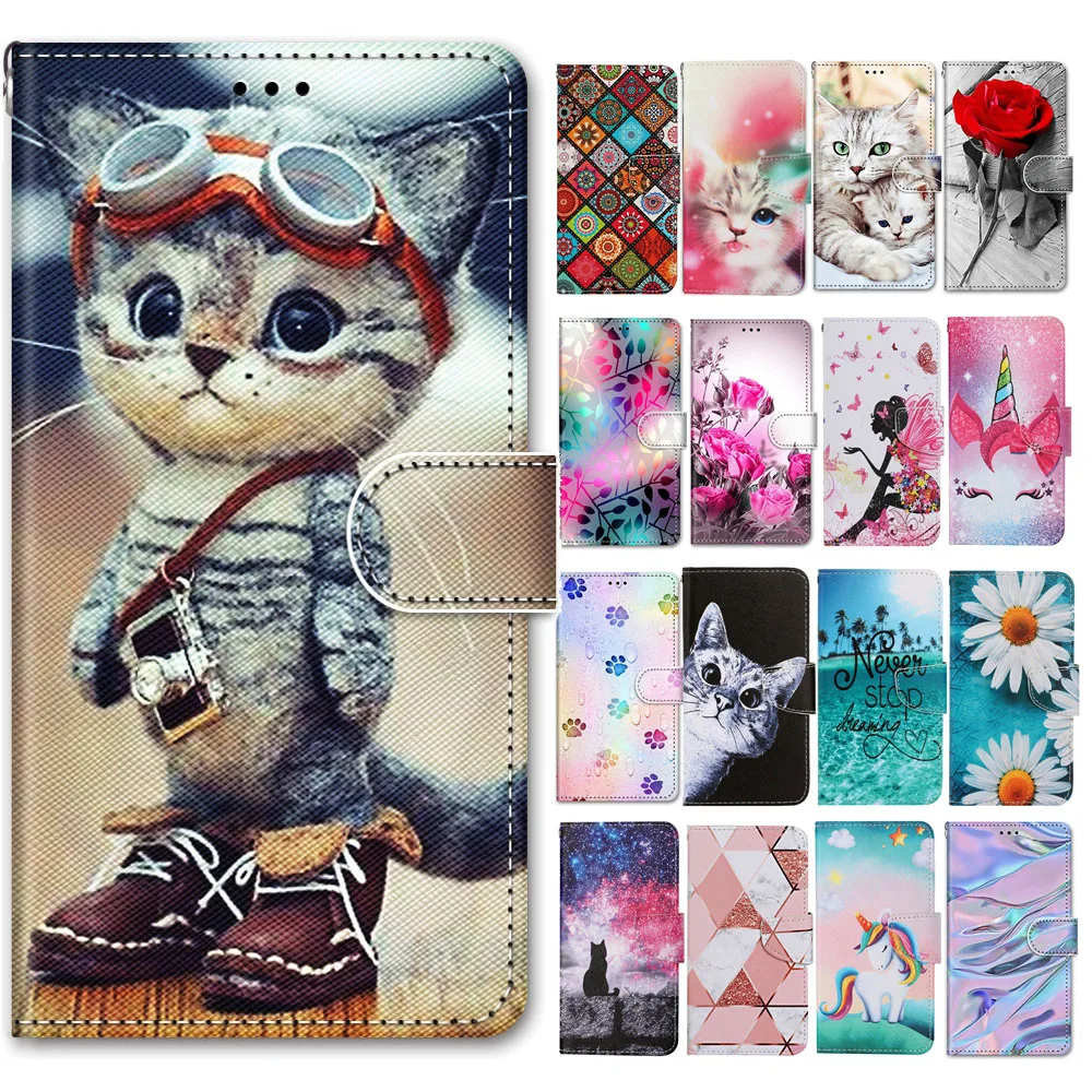 360 Полный Чехол для Funda iPhone 13 Pro Max iPhone13 мини Чехлы милый кот Единорог мраморный Флип Бумажник кожаный чехол Capinha для женщин