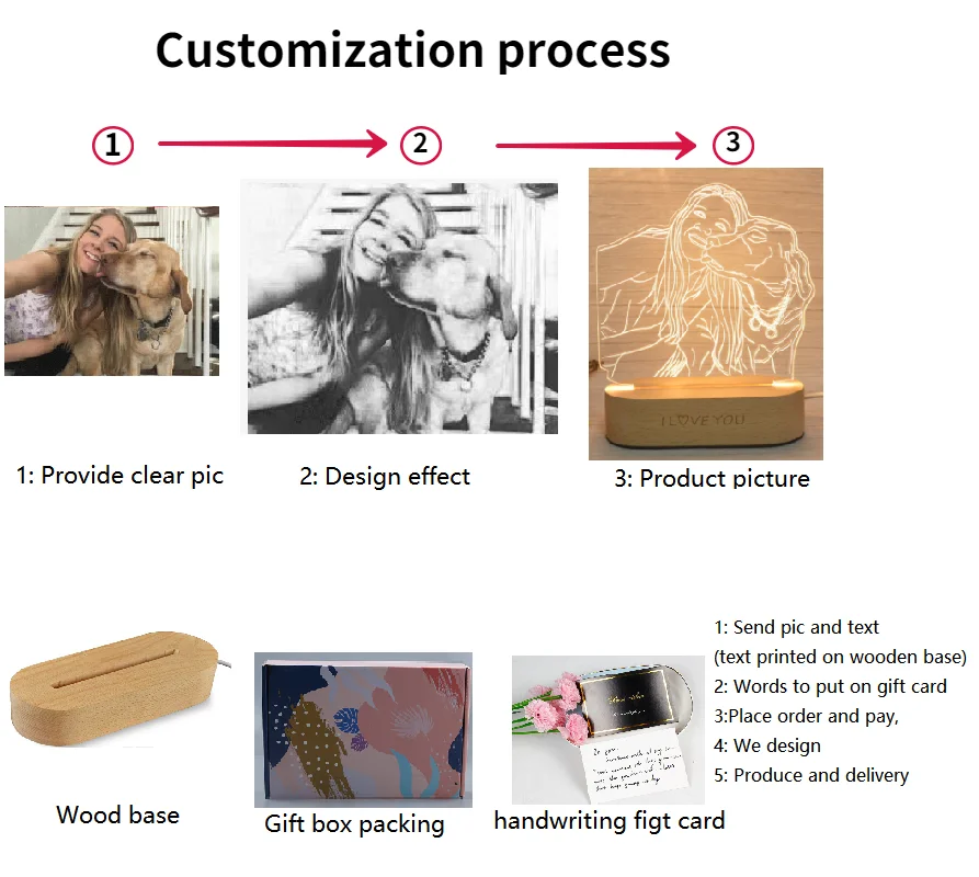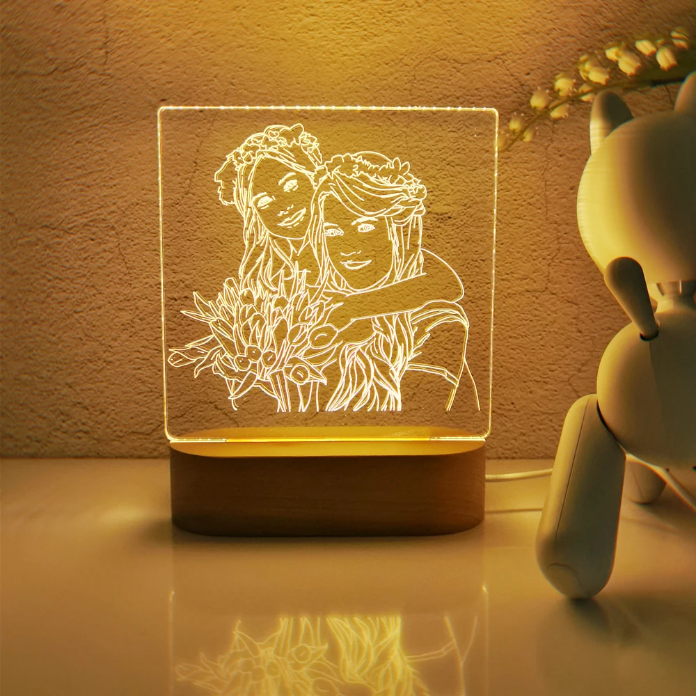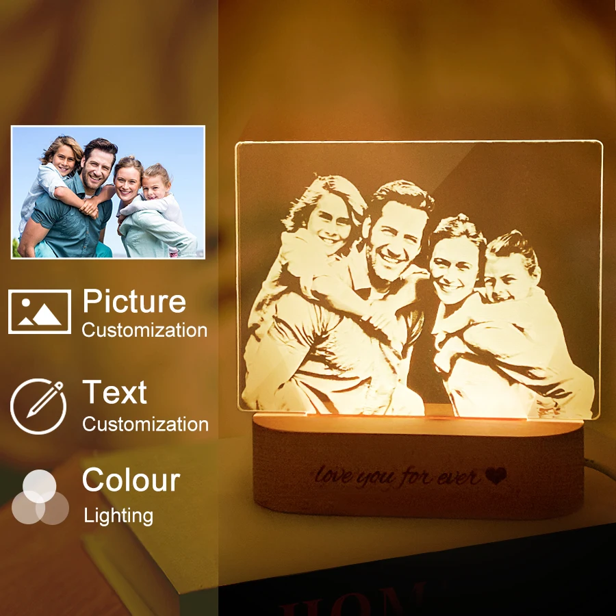 Ночник под заказ, светодиодный 3d светильник для спальни, декор для детей, подарок на день рождения, деревянное основание, индивидуальный подарок для мамы с напечатанным текстом