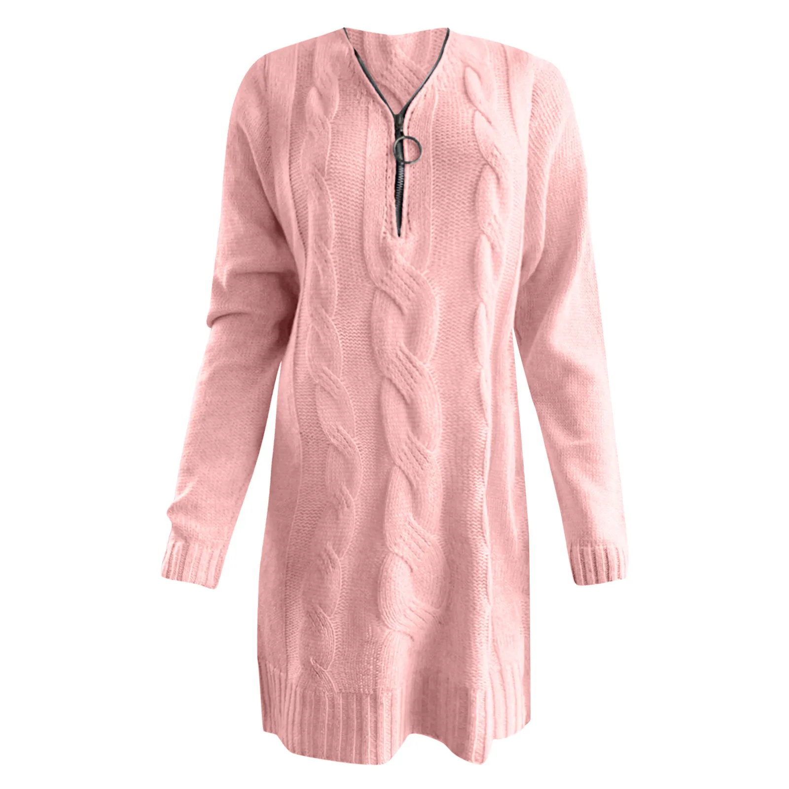 Женское трикотажное платье-свитер с длинным рукавом и v-образным вырезом, мини-платья-свитера на молнии