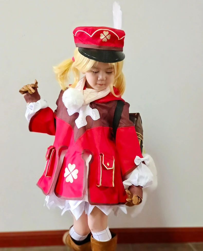 Аниме игра Genshin Impact Cosplay Klee косплей костюм парики рюкзак Loli Вечерние наряды для горничной униформа для взрослых женщин и детей для девочек Хэллоуин карнавальные костюмы реквизит аксессуары