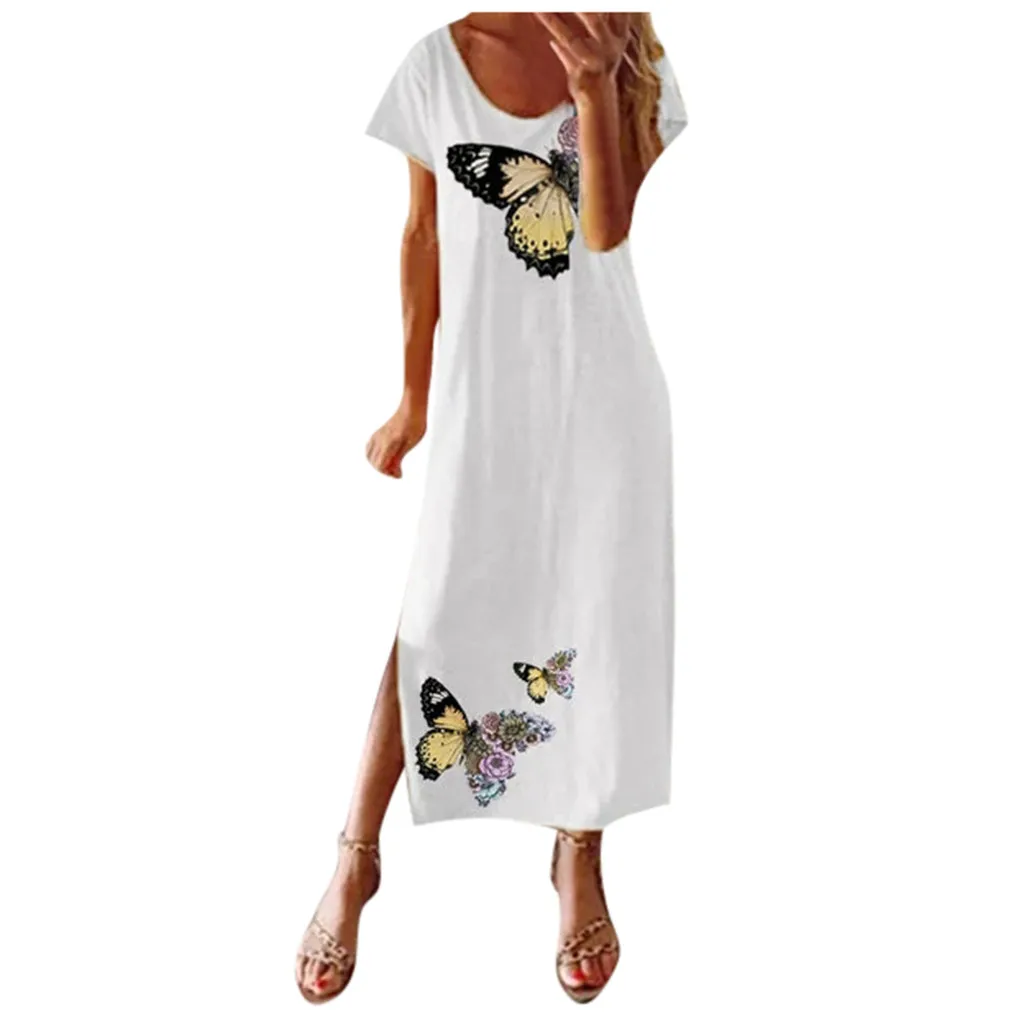 Женское богемное пляжное длинное платье, винтажный сарафан в стиле ретро с принтом бабочек, женское свободное повседневное богемное платье