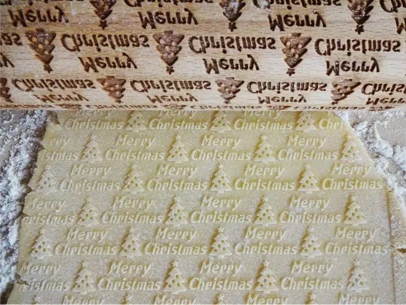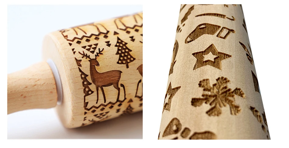 Скалка деревянная с тиснением и выгравированным тиснением, Скалка с рождественским рисунком снежинок и цветов для выпечки печенья с тиснением