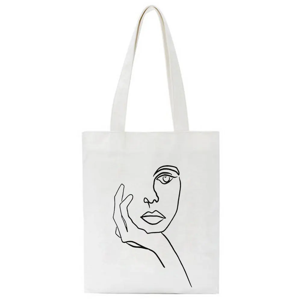 Женская Холщовая Сумка-тоут, повседневная вместительная сумочка в литературном стиле, в стиле абстрактного искусства, шоппер на плечо
