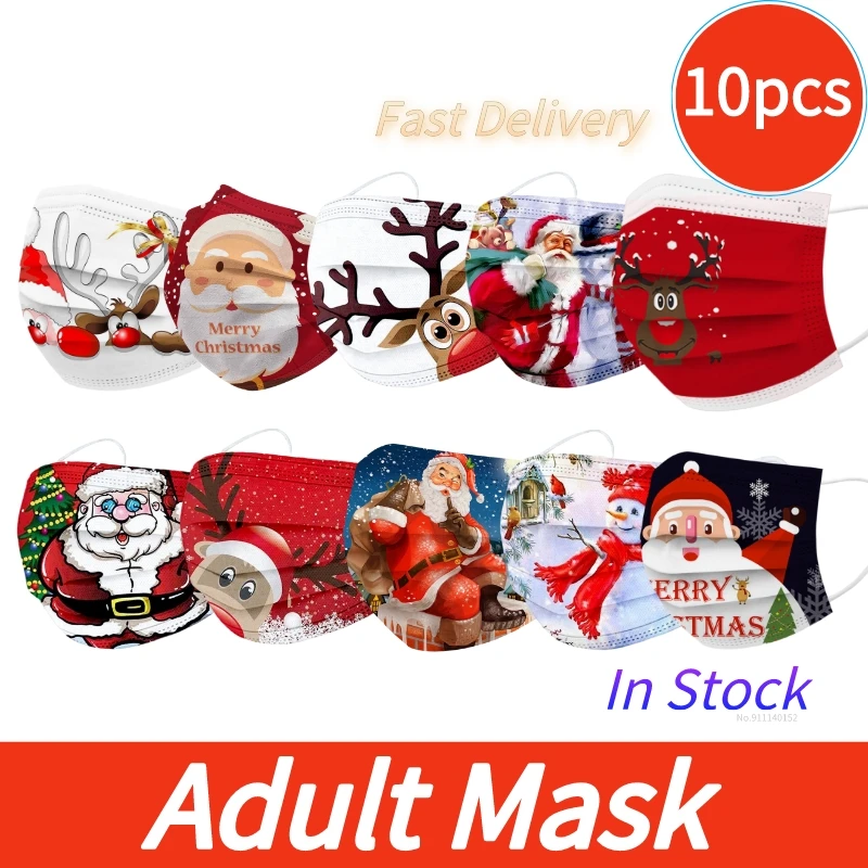 10 шт., маски для взрослых, с рождественским принтом