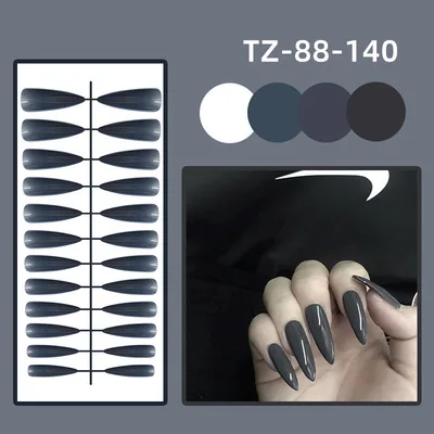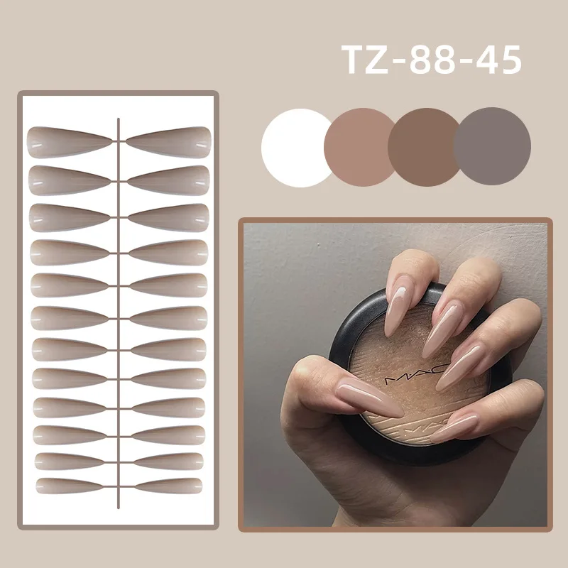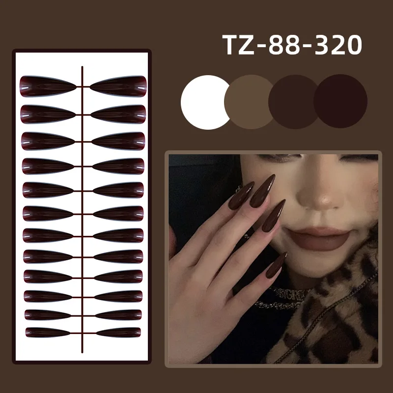 Накладные ногти с полным покрытием 2021 новый стиль черные коричневые прозрачные тонкие французские жемчужные накладные ногти с клеем A005