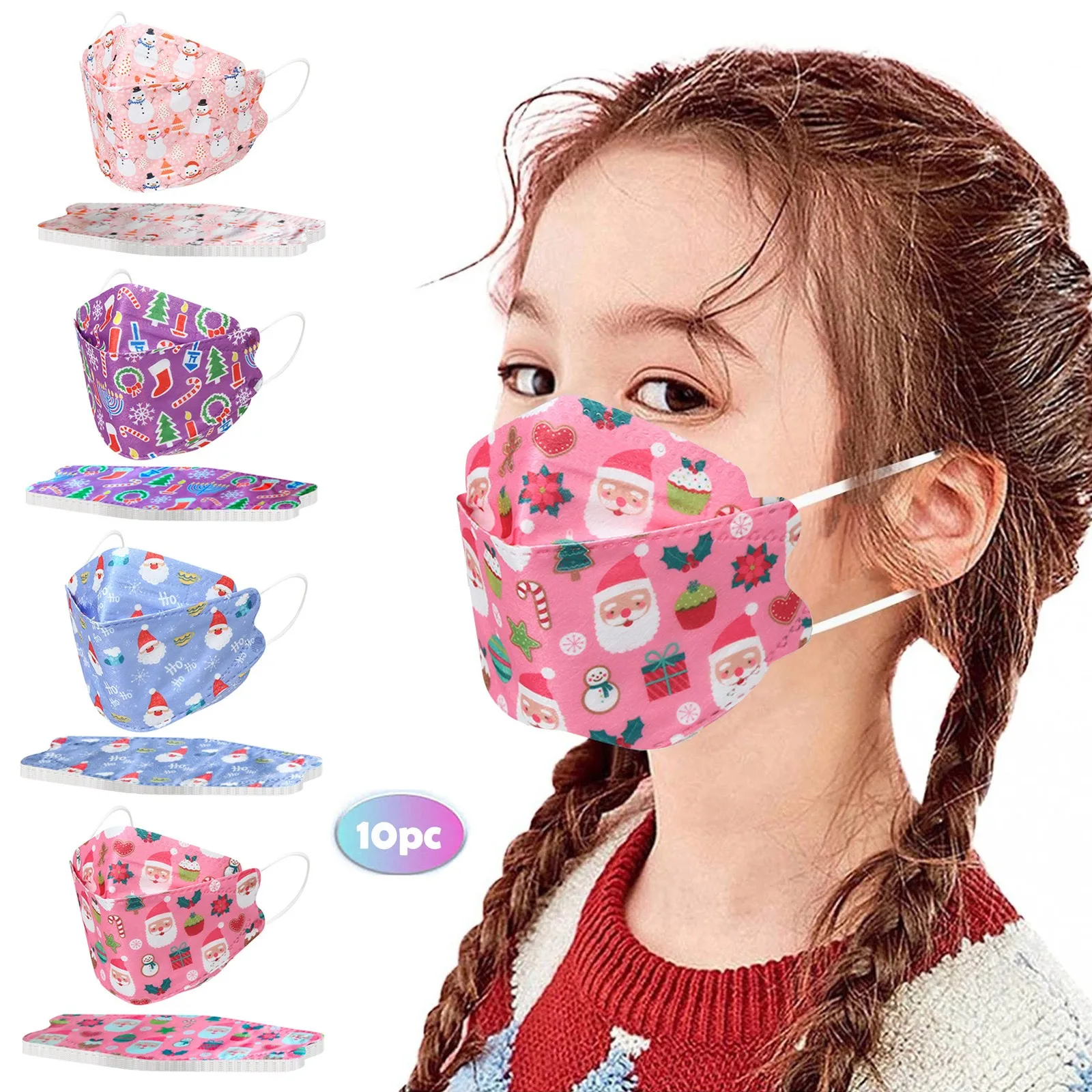 Новинка 2021, модная Пылезащитная маска, 10 шт., детская одноразовая маска для лица, Рождественский 3D-дизайн, 4-слойная детская фотомаска