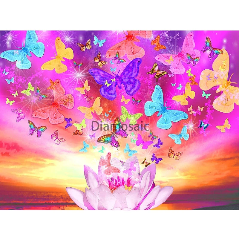 Алмазная живопись 5D "сделай сам", Бабочка, цветок, картина по номе...