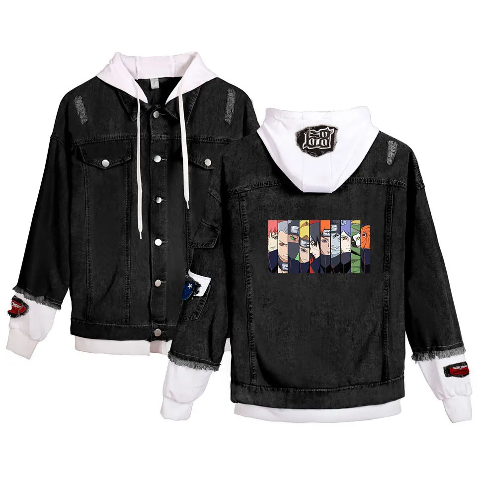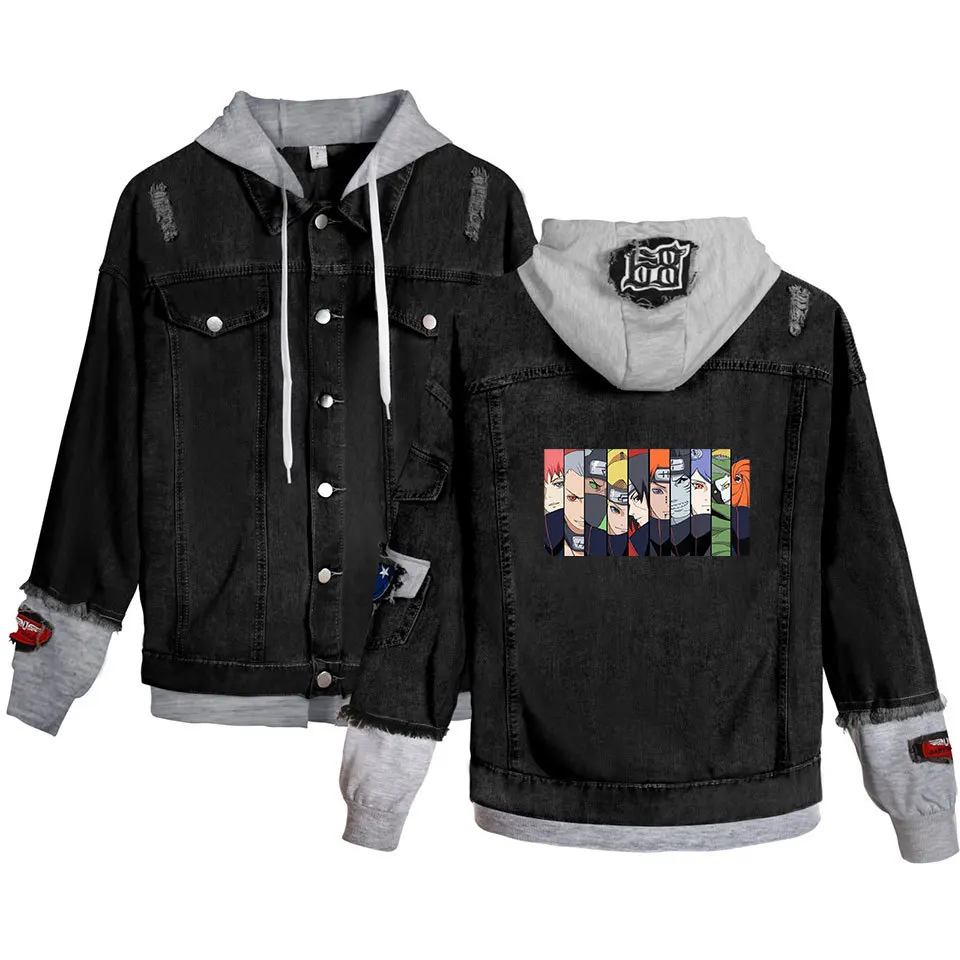 Джинсовая куртка с капюшоном Akatsuki SasukeKakashi, Мужская джинсовая куртка с капюшоном wo, уличная одежда большого размера для осени и зимы