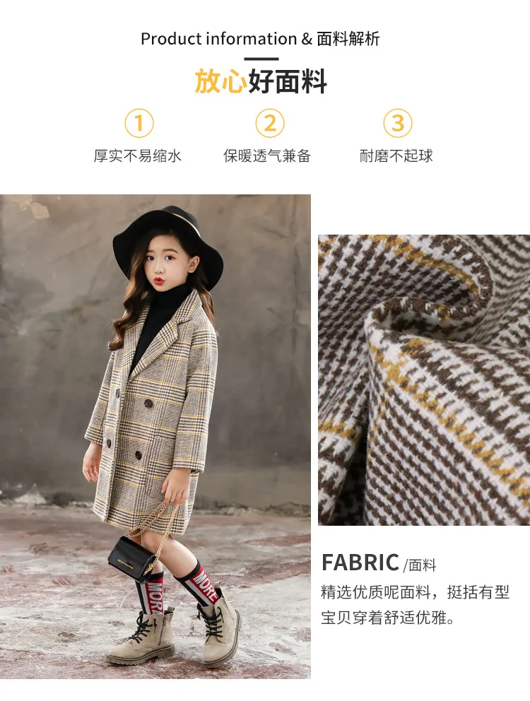 Шерстяное пальто для девочек, зимние толстые длинные куртки для дев...