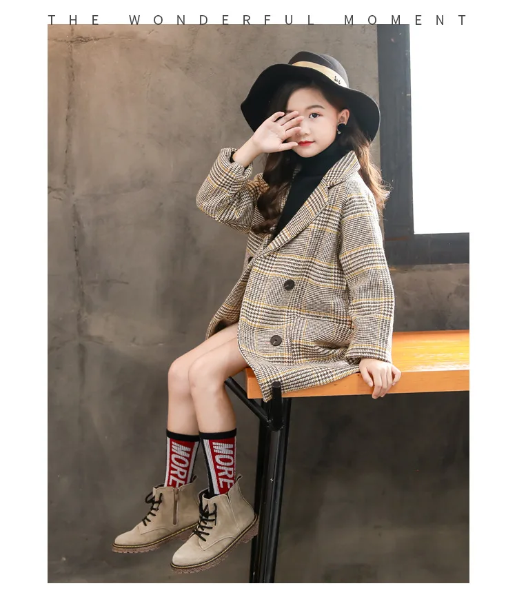 Осенняя английская одежда для подростков, детское зимнее пальто, плотная куртка, модная клетчатая верхняя одежда для девочек