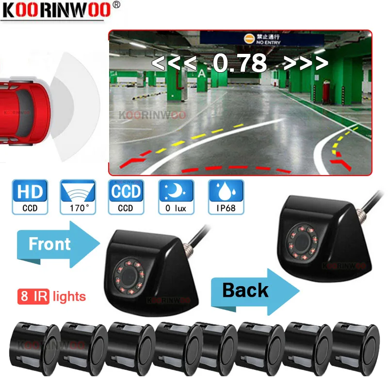 Умная Система для парктроника, 4 передних + 4 задних парктроника, 8 камер заднего вида